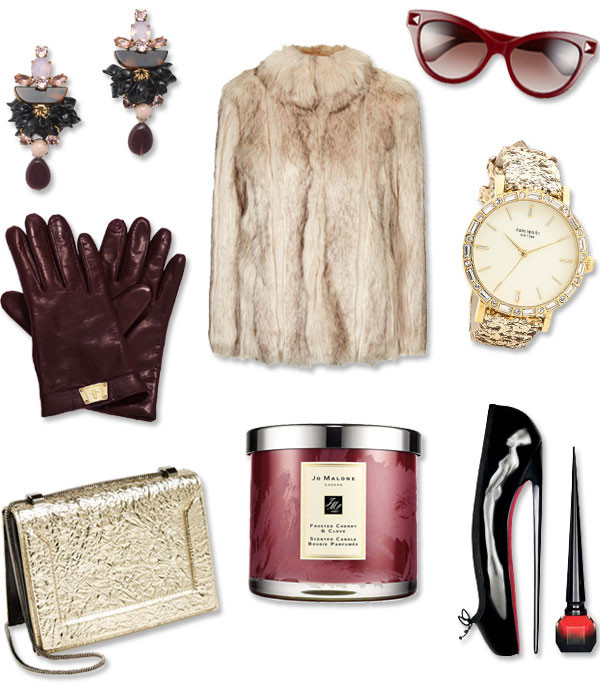 Some girls crave the finer things in life, so why not give it (or at least the illusion of it) to them? A faux fur jacket from Topshop brings the drama without the the high price tag, and Christian Louboutin's prettily packaged nail polish offers a little piece of red-soled cache. It doesn't get any blingier than this sequined and bejeweled Kate Spade watch with interchangeable straps, while J.Crew's crystal earrings are more subtle in their shine. Cashmere-lined leather gloves keep posh hands toasty this holiday season, and Valentino's Rockstud sunglasses protect glamour girls from paparazzi flashbulbs. On the splurgier side is the most perfect going out bag I've seen all season: the Soleil Mini in platinum from 3.1 Phillip Lim. Finally, a Jo Malone candle in Frosted Cherry and Clove perfumes the glamour girl's pad for the holidays.